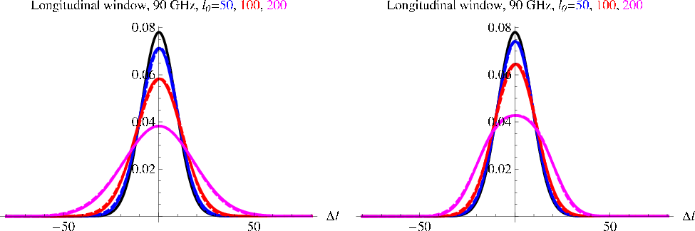 This approximation allows us to obtain an intuitive idea of how the bandwidth smearing acts with good enough accuracy to estimate the sensitivity loss. We discuss in Sect. 2.5 a refined form of the kernel that takes into account the frequency dependence of the beam and the intensity. As shown in Fig. 2, the difference between the approximate kernel, derived in Sect. 2.3, and the refined kernel is small.
