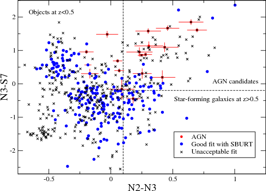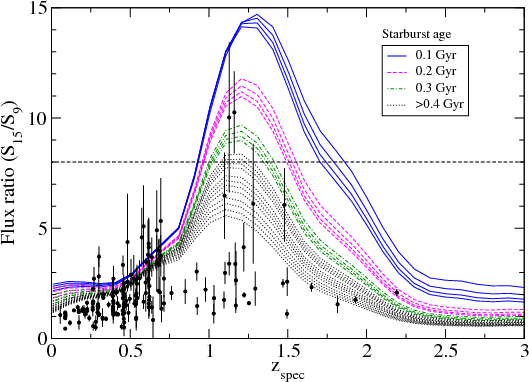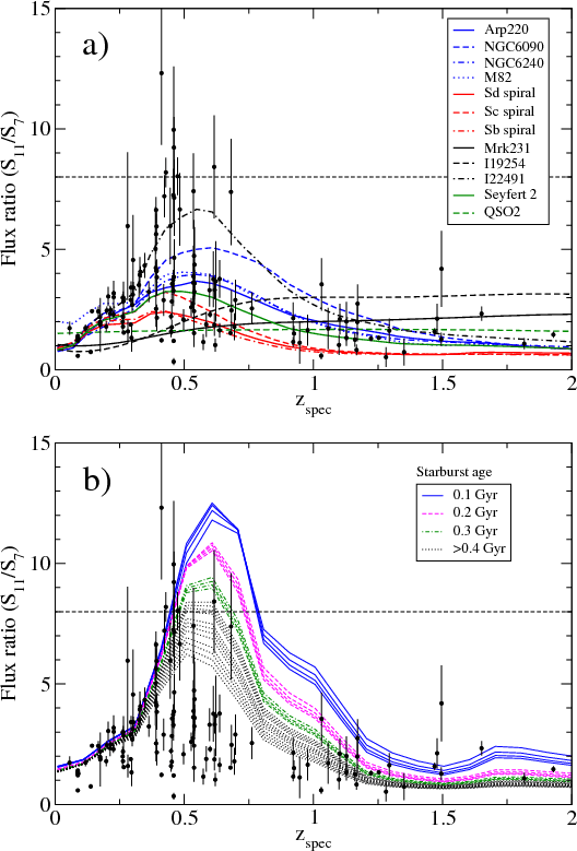 m (PAH-to-continuum flux ratio in the rest frame), which are useful for identifying starburst galaxies at