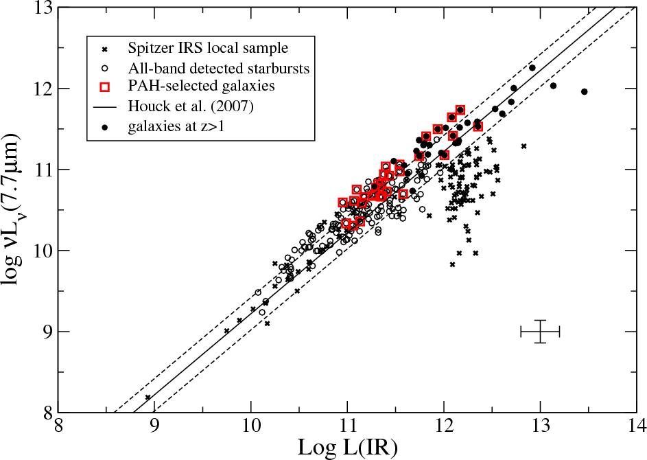 PAH-selected galaxies. Their PAH luminosity is higher than local