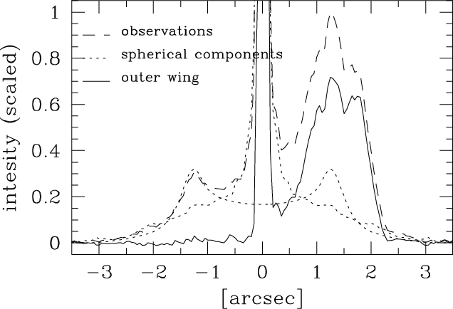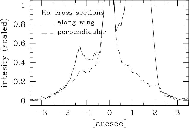 A 600-s VLT/UVES (Dekker et al. 2000) echelle spectrum was obtained in 2005, using a slit 0.5 arcsec wide and 11 arcsec long. The slit was placed through the centre of the nebula, aligned with the jet-like structure. The pipeline calibration was applied, including wavelength calibration and merging of the separate orders of the spectrum. The observations cover a spectral region approximately from 3300 to 6600 Å. The long-slit spectra of M 2-29 are spatially resolved, although they are at much poorer resolution than HST images and the seeing during the observations was nearly 1.5 arcsec.