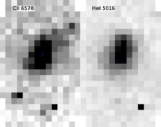 The data were analyzed with the GIRAFFE base line data reduction software (girBLDRS a.k.a. Geneva pipeline). Correction of bias-level flat-fielding, and wavelength calibration were prepared in a standard way. Spectra were extracted with the sum-extraction method, because the default optimum extraction is not well suited to an emission-like object. The airmass was lower than 1.06 for all frames alleviating the need to correct for differential atmospheric refraction. The data were not flux calibrated.