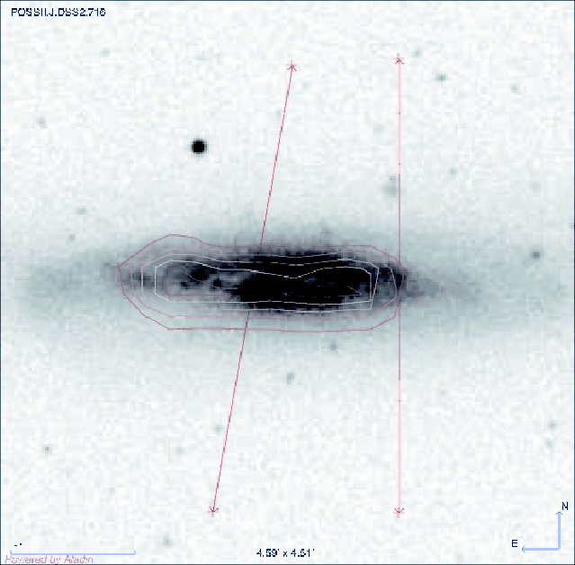 NGC 4388 is a highly inclined Seyfert 2 spiral galaxy (of type Sab) with mB=12.2 mag and a radial velocity of
