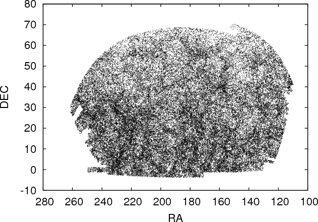 from our group search and concentrated on the main area, limited by the SDSS coordinate ranges