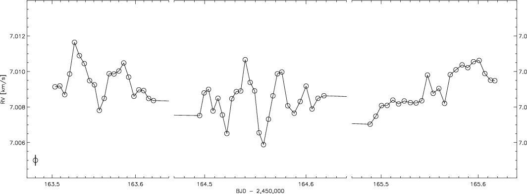 time-series data, 3 years of HARPS radial velocity monitoring,