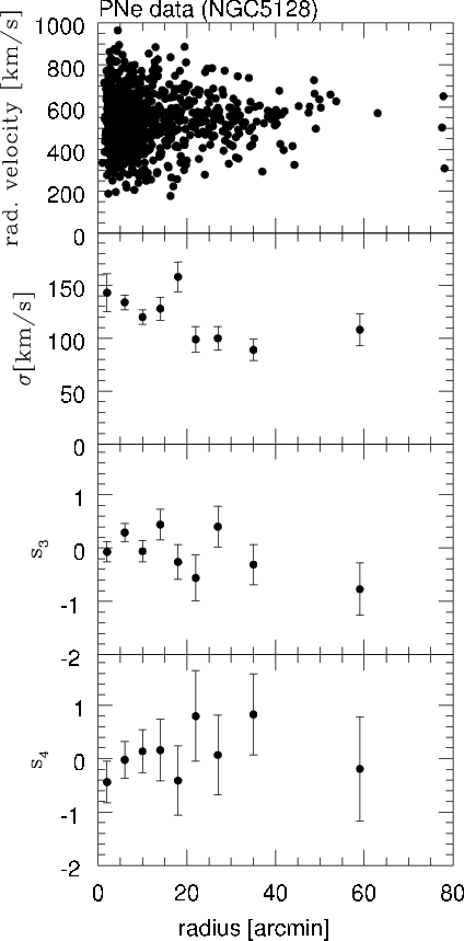 e.g. Richtler et al. 2004), thus reducing the number of tracers used per bin. For PNe all the observed objects are assumed to belong to one population.