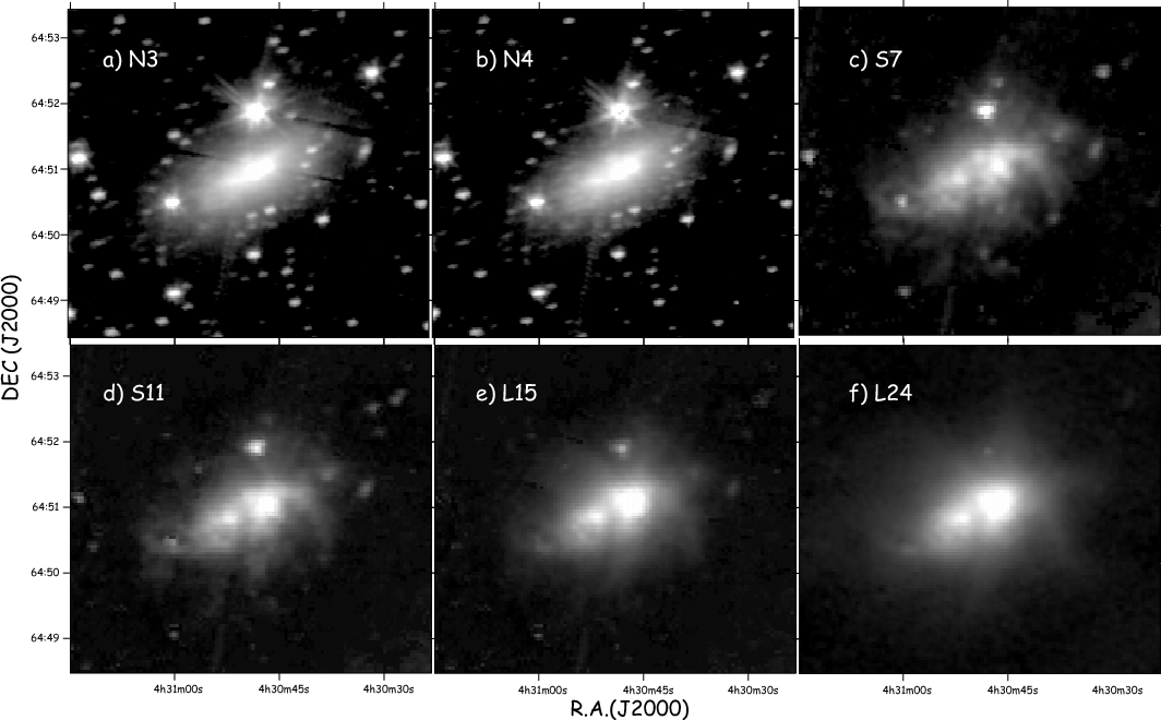 NGC 1569 for 6 infrared bands (3.2, 4.1, 7,