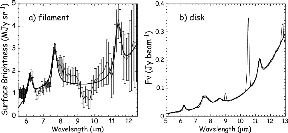 compared to the galaxy disk observed with the infrared spectrograph on Spitzer.