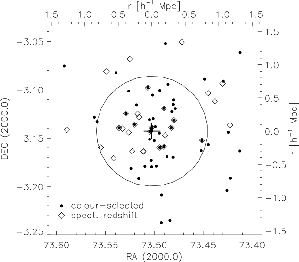 member galaxies. A VLT/FORS2 spectrum was taken to determine the