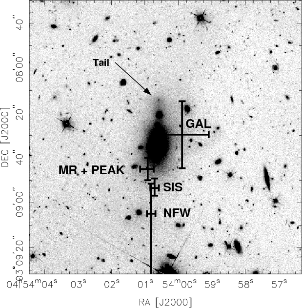rarely, by the X-ray centroid or weak gravitational lensing. Either of
