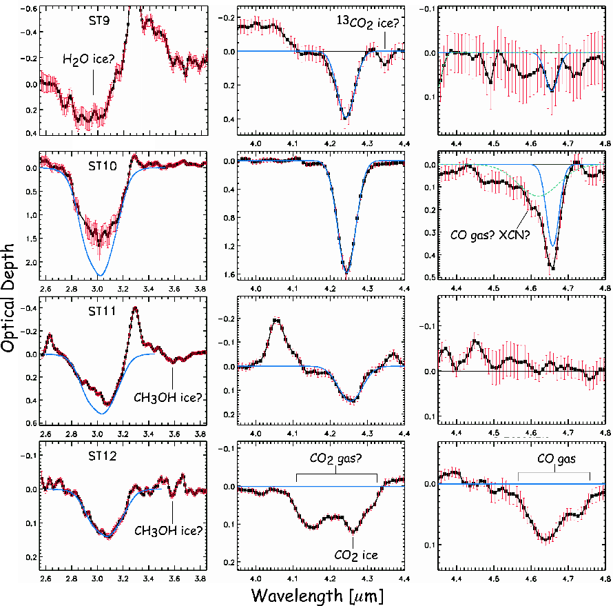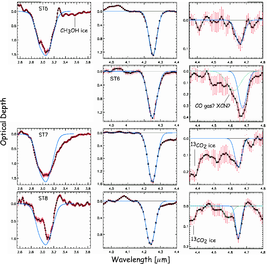 (Sloan et al. 2003), whose ice column densities are already presented in Gibb et al. (2004). The spectral resolution of these data is high enough to resolve narrow ice features (R