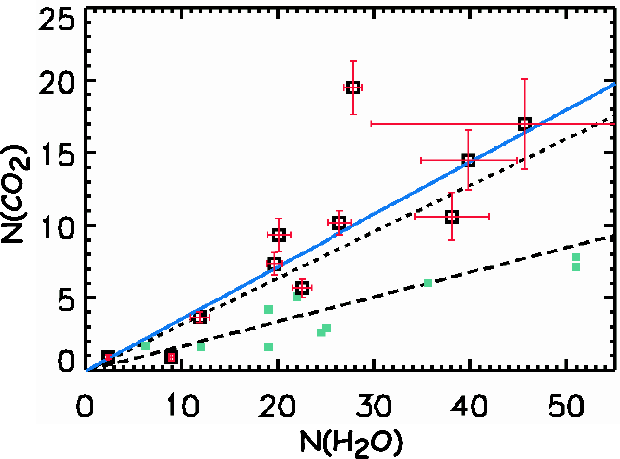 80) by convolving the point spread function of the IRC. Next, we derived column densities of the CO2