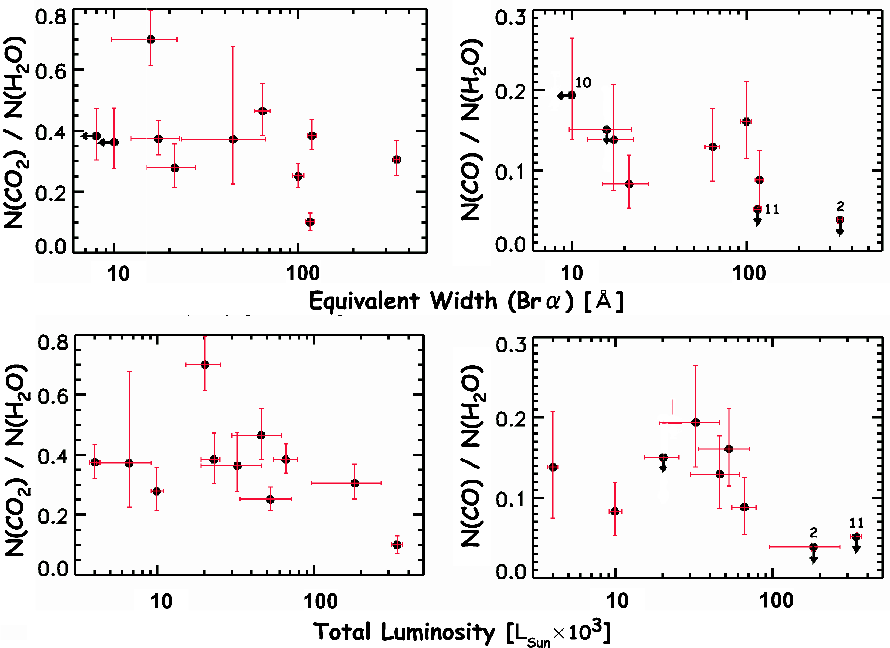- The ``abundance'' of a given ice is generally defined as the ratio of the column density relative to the H2O ice since it is the most abundant ice species.