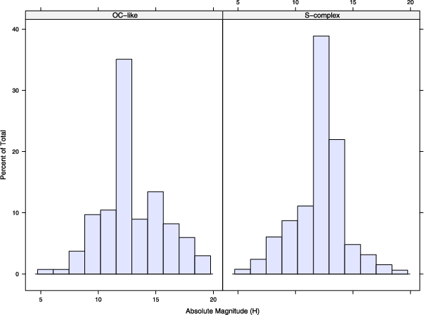 Figure 3: Same as in Fig. 2, but for the absolute magnitude H. |