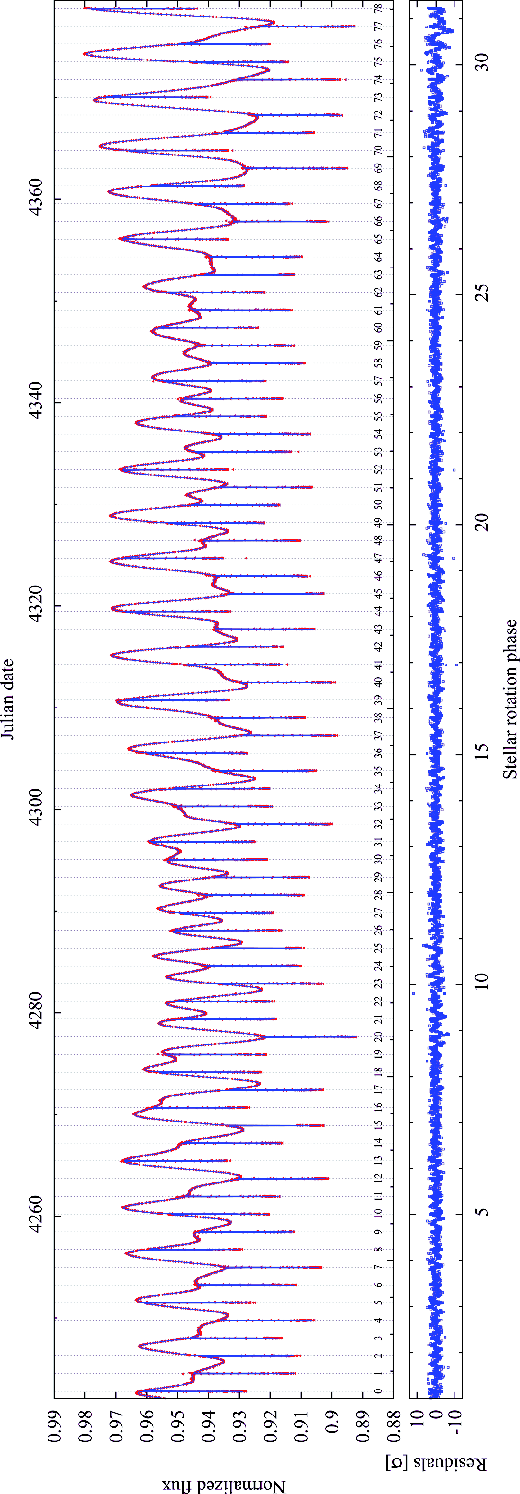 both the transit profiles and the rotationally-modulated global lightcurve are fitted simultaneously