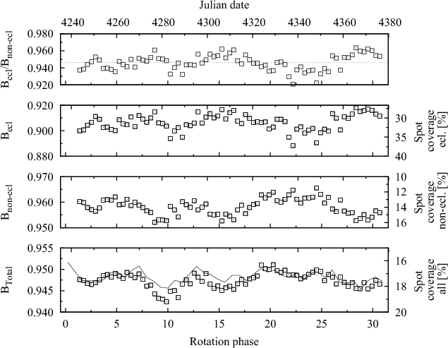 the spot coverage of the eclipsed section reaches a maximum of 37%,