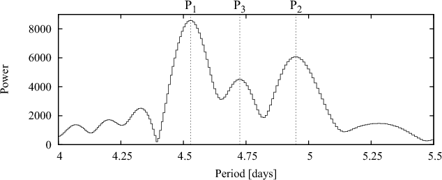 at a period of approximately 4.55 days, which is