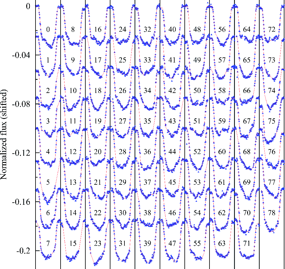 In the following the first transit inside our data interval is labeled 0, the last 78.