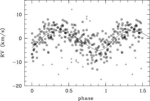 did not derive an orbital solution, however. Vitrichenko (2002) analyzed the RVs measured from the IUE
