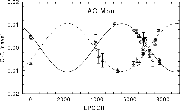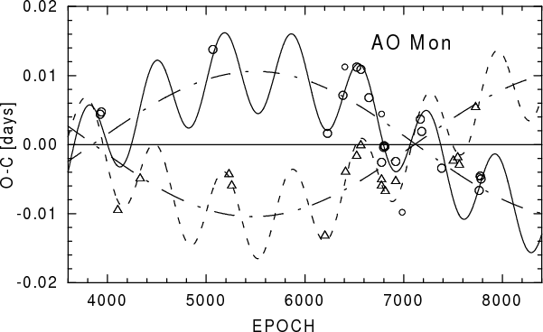 As was mentioned in the previous section, AO Mon has a small but significant orbital eccentricity. Both the classical theory of tides and the General Relativity predict that a close system like this should show a certain degree of periastron advance.