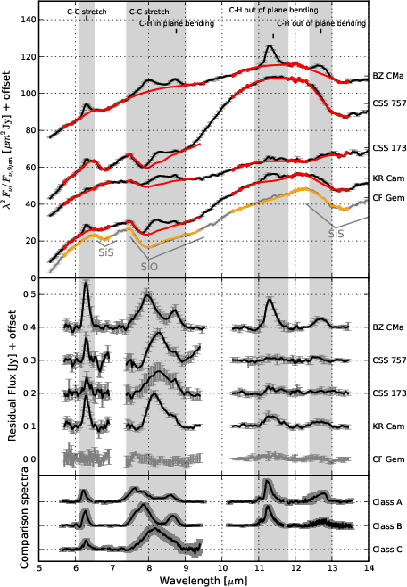 cubic splines for the 6.2 and 11.2 m features and comparison stars for the 7.9-8.6