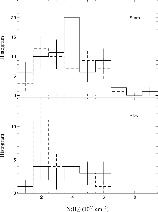 We study the distribution of stars and BDs relative to the H2 molecular gas surface density computed from CO observations and find that both distributions are likely drawn from the same distribution, even if there appears to be an excess of BDs found at low H2 surface density. A similar study for objects with and without disks shows that they have the same distribution relative to the underlying gas.