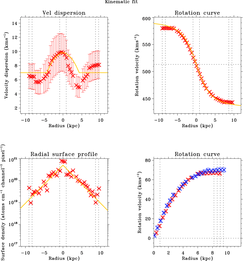 Many methods have been devised to measure the rotation curves of edge-on galaxies. In Table 3, we display the previous rotation curve measurements of edge-on galaxies, showing the method used and the resolution of the observations. In the next section, we will briefly review these methods, and the few previous methods to measure the gas velocity dispersion and surface density, before presenting our new method in Sect. 3.