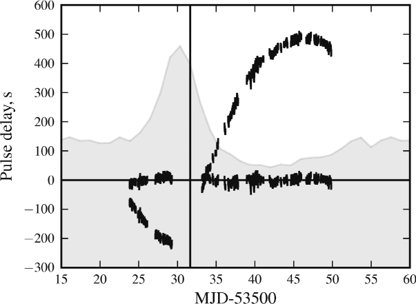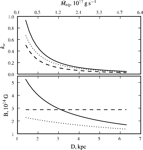 An alternative scenario is that the long pulse period is explained by the presence of some unidentified braking torque, which is less dependent on magnetic field strength, and the CRSF pulse phase variability is attributed, as concluded by Kreykenbohm et al. (2004), to multipole field components.