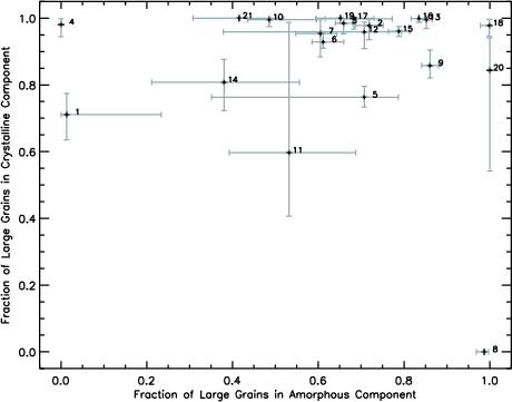 Erratum for Fig. 7 in Gielen et al. (2008): the fraction of large grains in the amorphous component versus the fraction of large