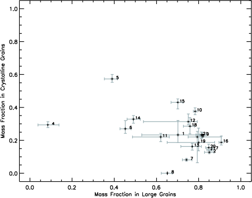 Erratum for Fig. 8 in Gielen et al. (2008): the mass fraction in large grains (4.0 |