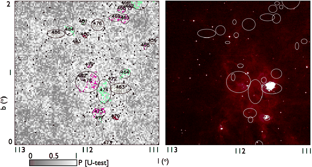 Based on the parameters derived from the statistical test it is impossible to determine the nature of the reddening. The next step is to cross-correlate the objects with existing optical, infrared and CO data. This process is described in an accompanying paper (Frieswijk et al. 2010).
