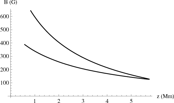 Figure 9: The average potential field R1-B2 along field lines shorter than 40 arcsec. z is the height over the photosphere. |