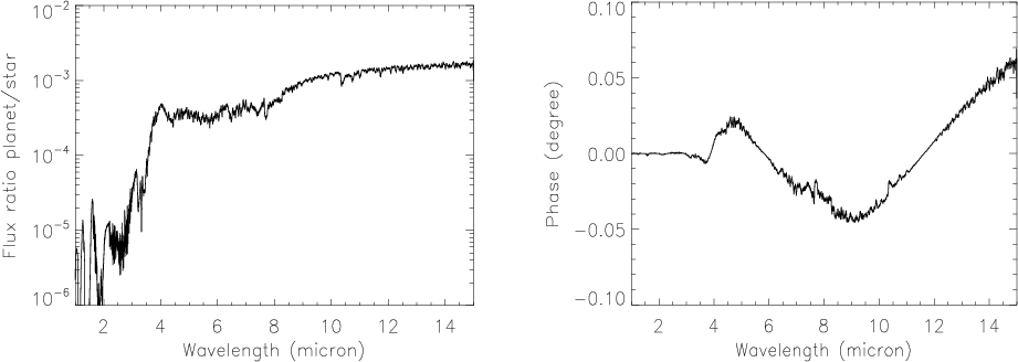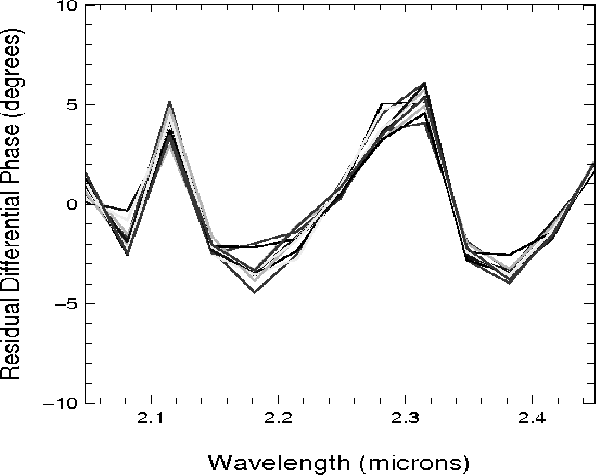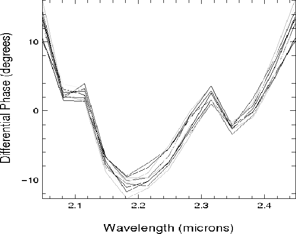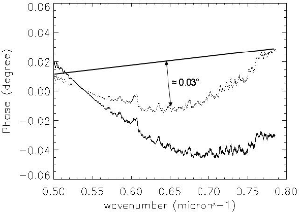 The data reduction software that we used here, named EWS, allows us to check that phases are not wrapped (Jaffe 2004). This calibration removes a large part of phase trends that could be caused by instrumental and other invariable effects during the night, such as a large part of the ozone absorption signature at 9.6