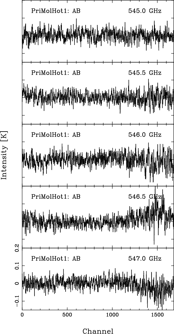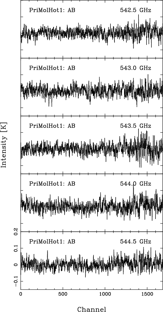 Results. No lines are detected at an rms level of