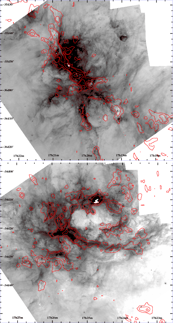 6334-NGC 6357 were delineated using near-IR extinction maps