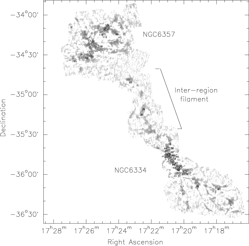 Methods. We study the complex NGC 6334-NGC 6357 in an