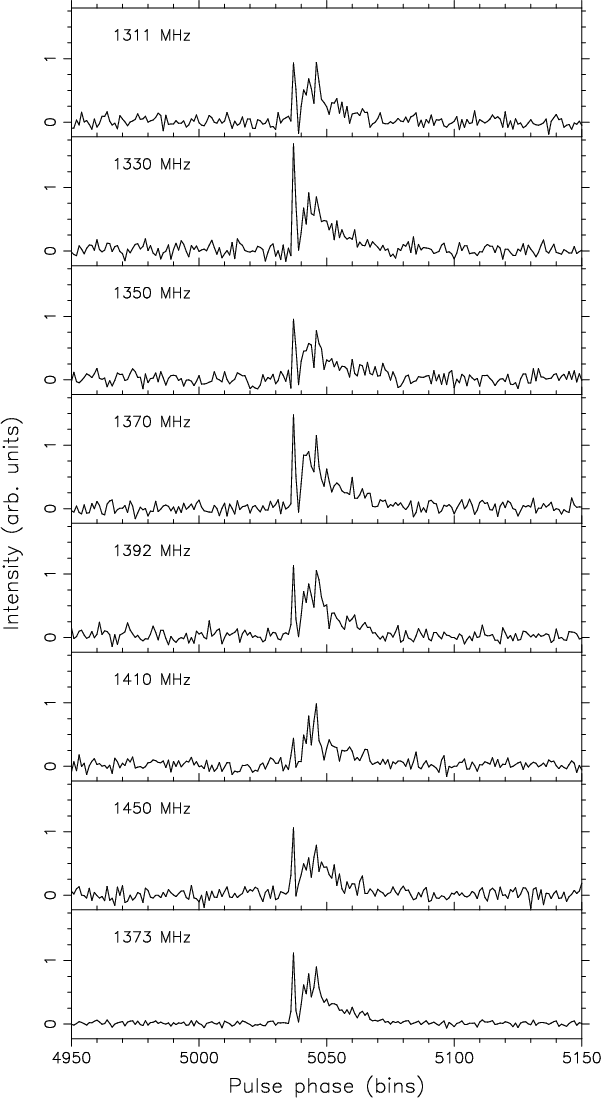 The pulsar was observed at eight different sky frequencies in