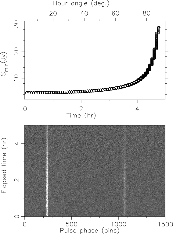 data. Giant pulses were detected by computing the peak signal-to-noise