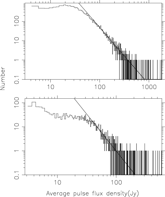 distribution. The large number of giant pulses detected were used to