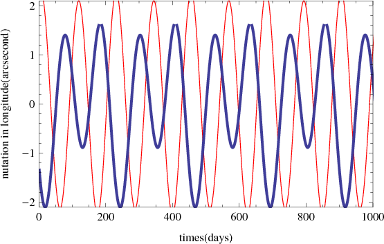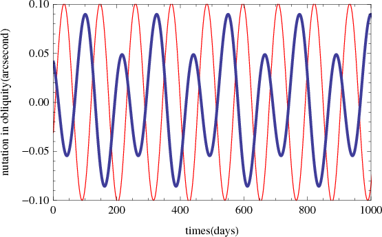 The nutation of the angular momentum axis is dominated by two sinusoids