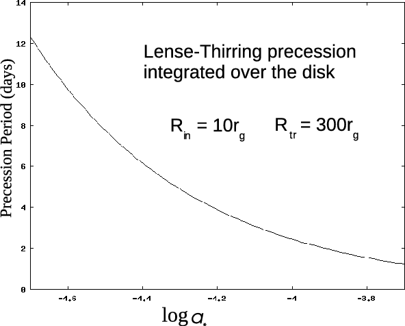 where the Bardeen-Petterson effect should align the midplane of the disk. For this truncated radius of the accretion disk