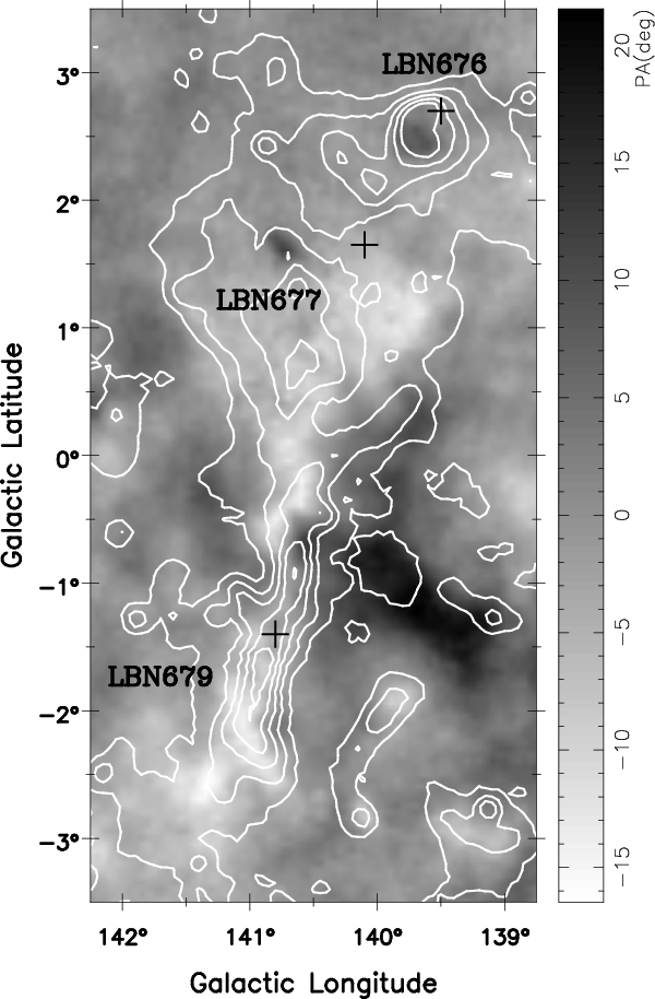 - PA is defined as the angle between E-vector and the Galactic north, which is equivalent to the angle between the B-vector and the Galactic plane. PA runs counter-clockwise.