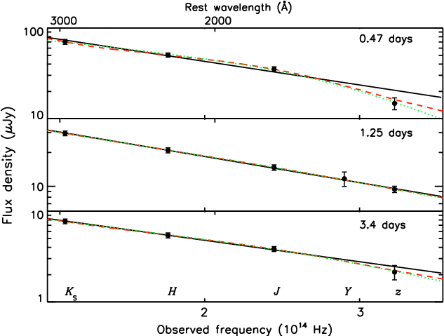 3 days from the Subaru telescope, as well as the critical UKIRT Z-band photometry at 0.47 days, upon which the claim of dust detection largely relies.