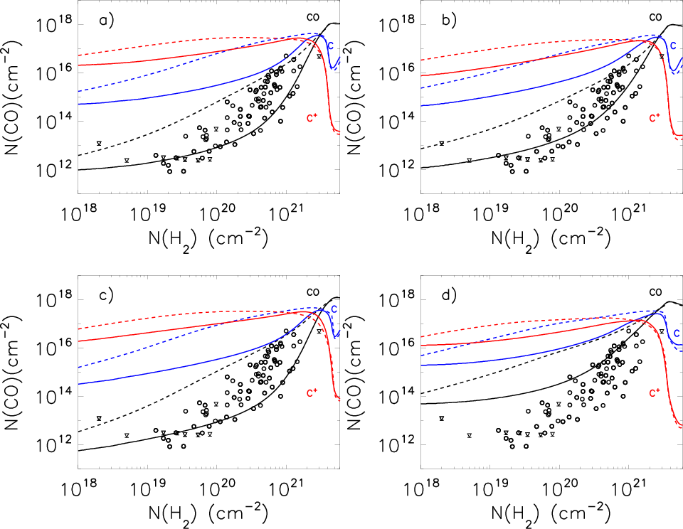 particular, the calculated CO(g) columns and [C+ + C]/CO