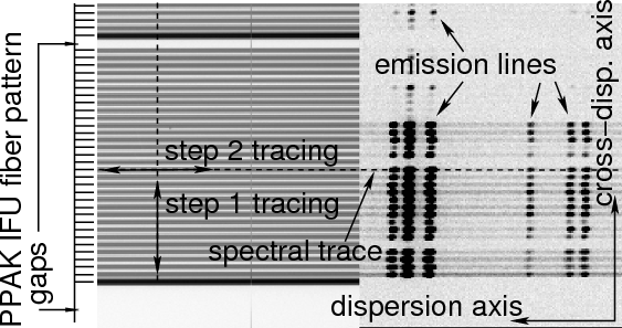 AcknowledgementsDuring a large part of the development time, this project was supported by the grants BMBF 03Z2A51 and BMBF 05A08BA1. A.M.-I. was supported by the Spanish Ministry of Science and Innovation (MICINN) under the program ``Specialization in International Organisms'' (ES2006-0003). We thank L. Cairós for her careful testing of the dispersion mask tool and for providing us with test data sets for bundle 1 of VIRUS-P. We thank O. Streicher both for his careful testing of all parts of P3D and for having written tools for the project web site, which automatically extracts and presents the routine documentation. Q. Parker and M. Relaño are thanked for providing us with test data sets for the LARR and SPIRAL IFUs. We, furthermore, thank A. Zwanzig for writing extensive installation instructions. We finally thank J. Adams and R. Sharp for providing us with instrument-specific information, which allowed us to configure P3D for VIRUS-P and SPIRAL, respectively.