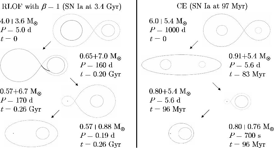 The question addressed in this work will thus pertain to the dominant formation scenario for elliptical galaxies. As a novelty, we will specifically investigate the influence of the description of mass-transfer efficiency during Roche-lobe overflow (RLOF). In Sect. 2 we give a brief description of our population-number synthesis code, and we elaborate on the new physical effects which have been incorporated as well as on the details of systems leading to a SN Ia. Section 3 contains our new results on the progenitors of SNe Ia, as well as a short elaboration on a special kind of merger. In Sect. 4 a comparison is made between the results of our code and those published by groups undertaking similar studies.