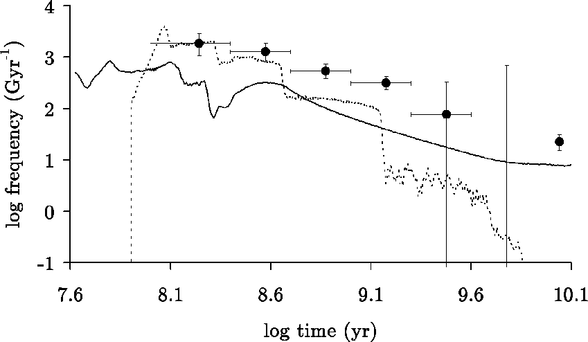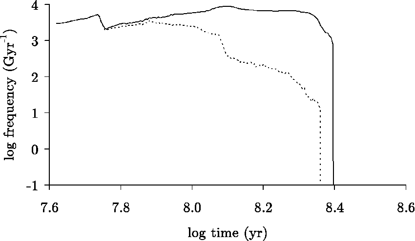 timescale of 0.1 Gyr. This factor depends on the adopted
