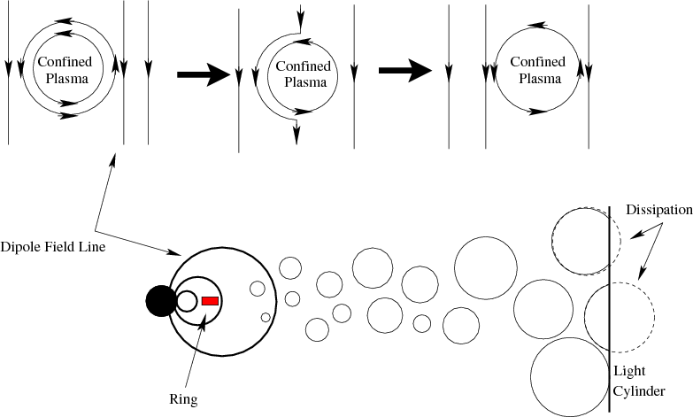 at the light cylinder of magnetic bubbles, produced near the ring during the