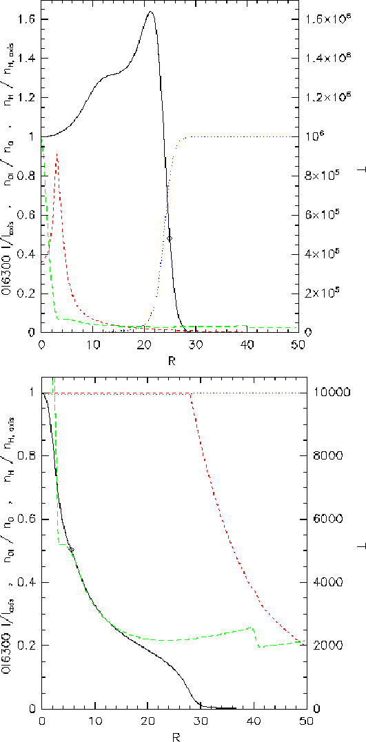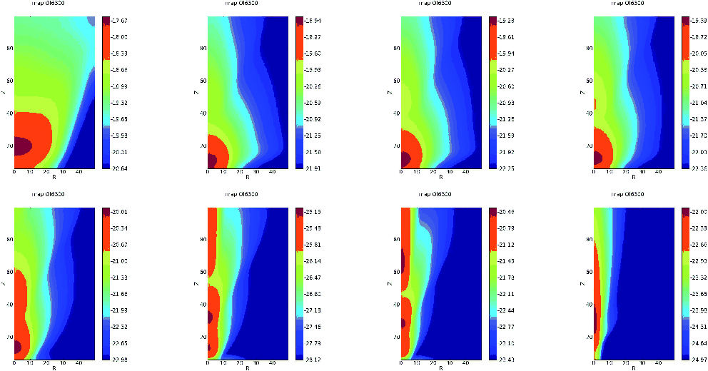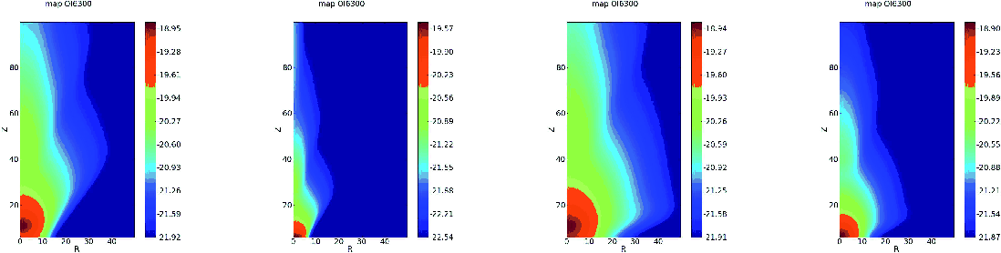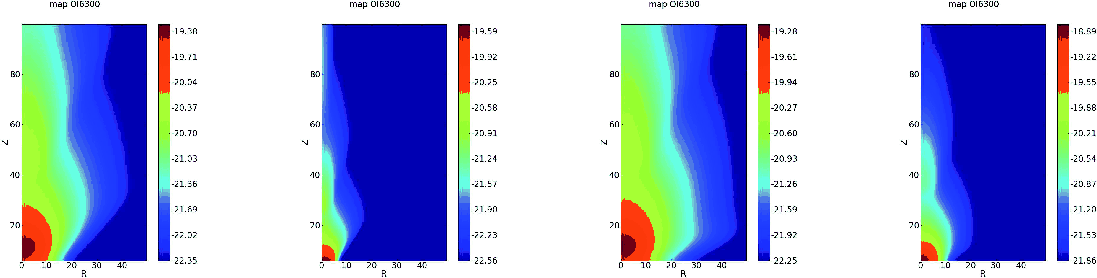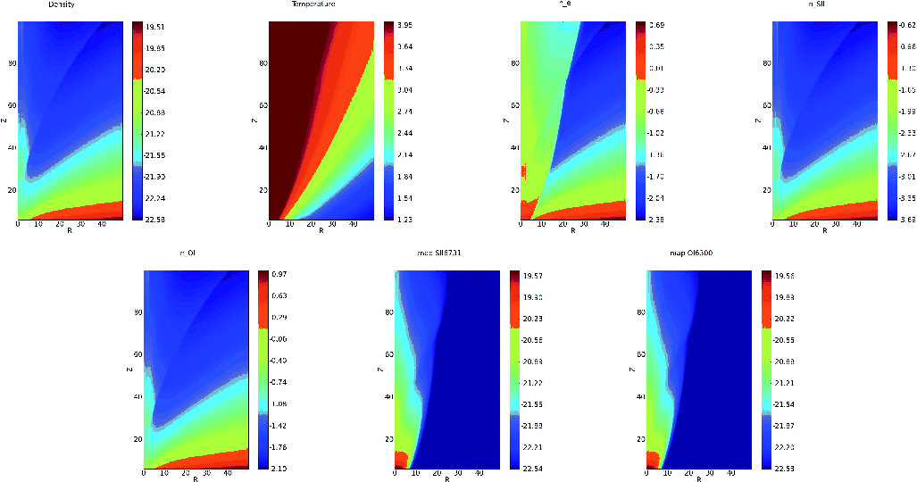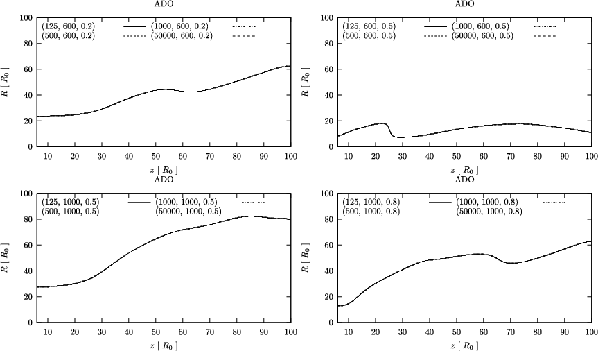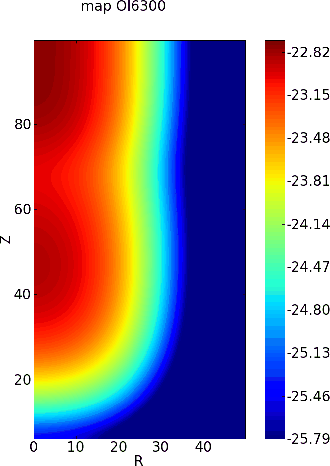 - if R (z) of the grid cell is larger than 10 AU (100 AU), we move to another grid cell 10% closer to the jet axis (equatorial plane); if R (z) of the grid cell is smaller than 10 AU (100 AU), we move to another grid cell 10% further away;