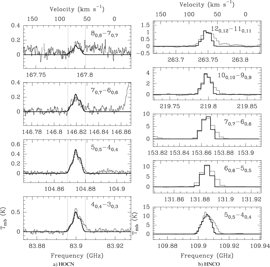 HNCO, in these sources, as well as those of HOCN and HNCO towards the