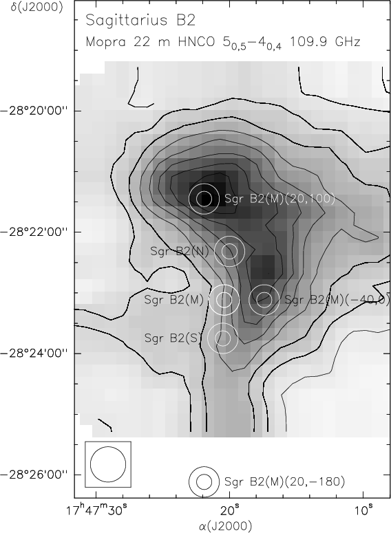 including the hot cores Sgr B2(M) and (N). The interstellar detection